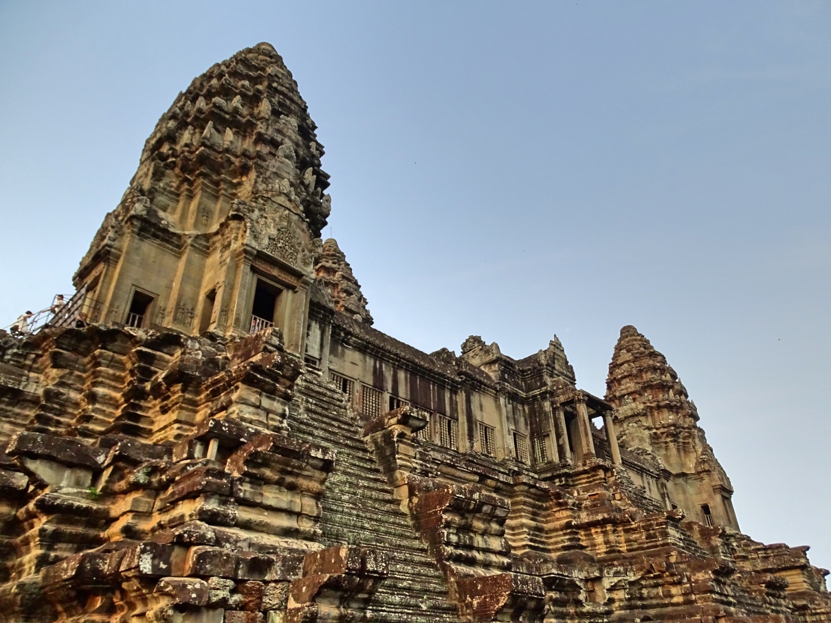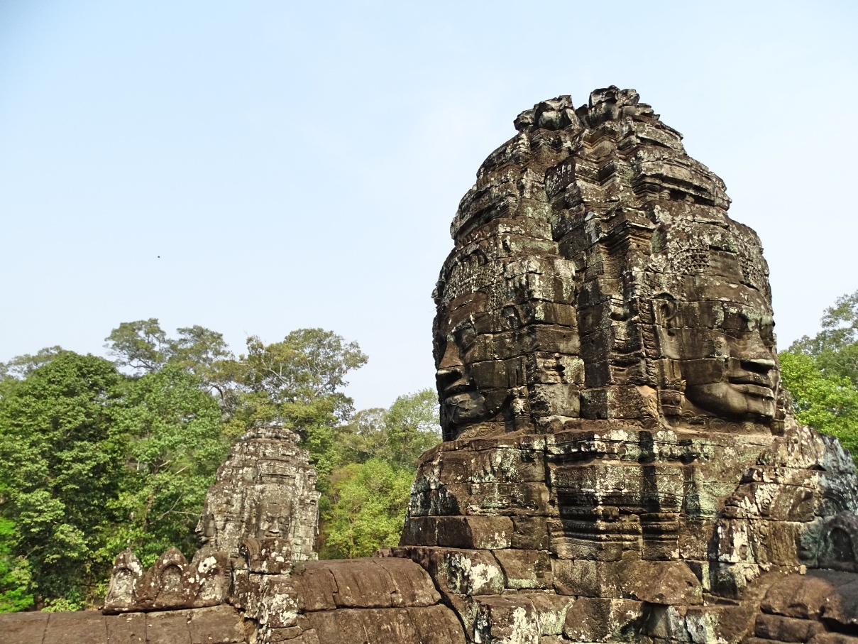 Der erste Tempel, wo ich auch den Sonnenaufgang sah, war Angkor Wat. Von dort ging es weiter durch das Südtor nach Angkor Thom, der alten Hauptstadt des damaligen Reiches. In der Mitte dieser ehemaligen Stadt befindet sich der Bayon, eine Tempelanlage, die besonders wegen der vielen Gesichtertürme berühmt ist.
