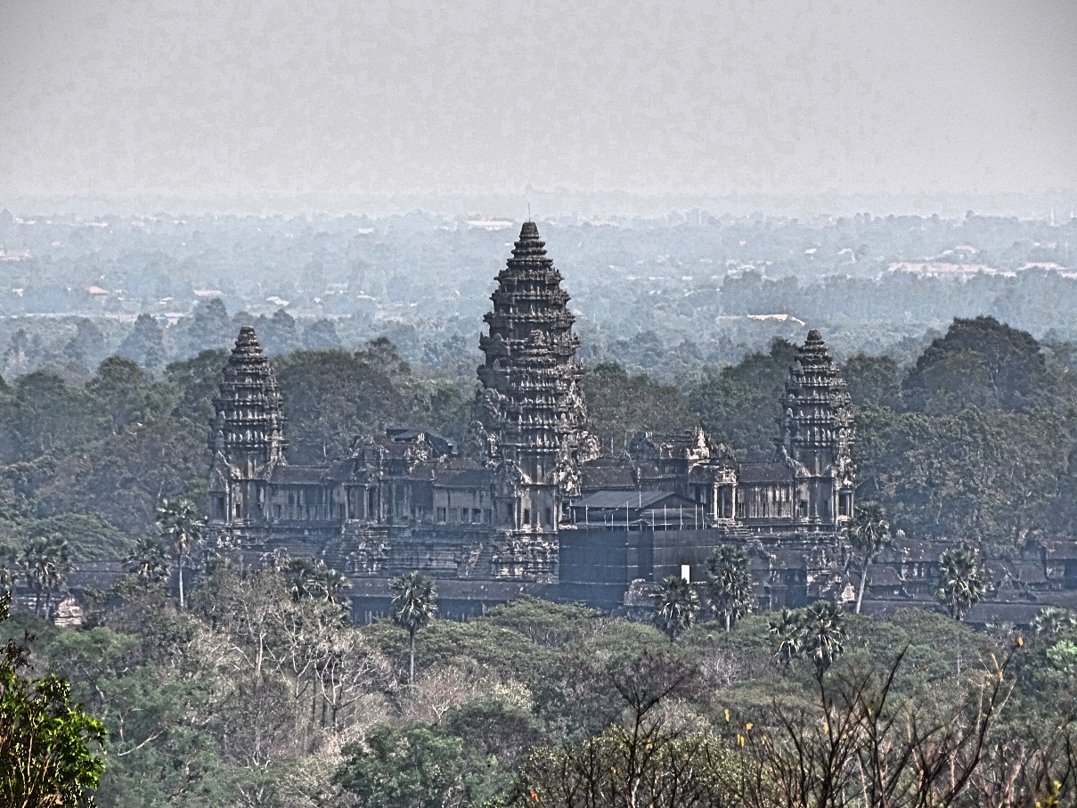 Nach einem fast elfstündigen Aufenthalt beendeten der Tuk-Tuk-Fahrer und ich auf der Anhöhe von Phnom Bakheng die Fahrt durch die Tempel um Angkor Wat. Normalerweise schauen sich viele Touristen auf dem Hügel den Sonnenuntergang an. Dies hätte eine Wartezeit von anderthalb Stunden erfordert und in Anbetracht der dann einfallenden Touristenmassen und der die Sicht einschränkenden Vegetation sparte ich mir dieses Event.