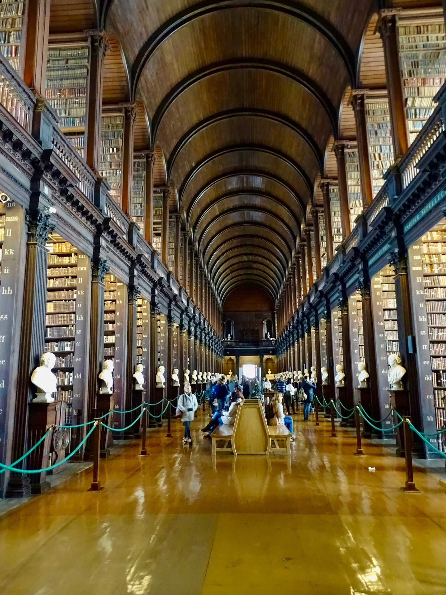 Unser erstes Tagesziel war die alte Bibliothek des Trinity Colleges. Der Hauptsaal „The Long Room“ aus dem Jahre 1732 mit seinen hohen Regalen voller antiker Bücher ist wirklich sehr beeindruckend und den Eintritt wert.