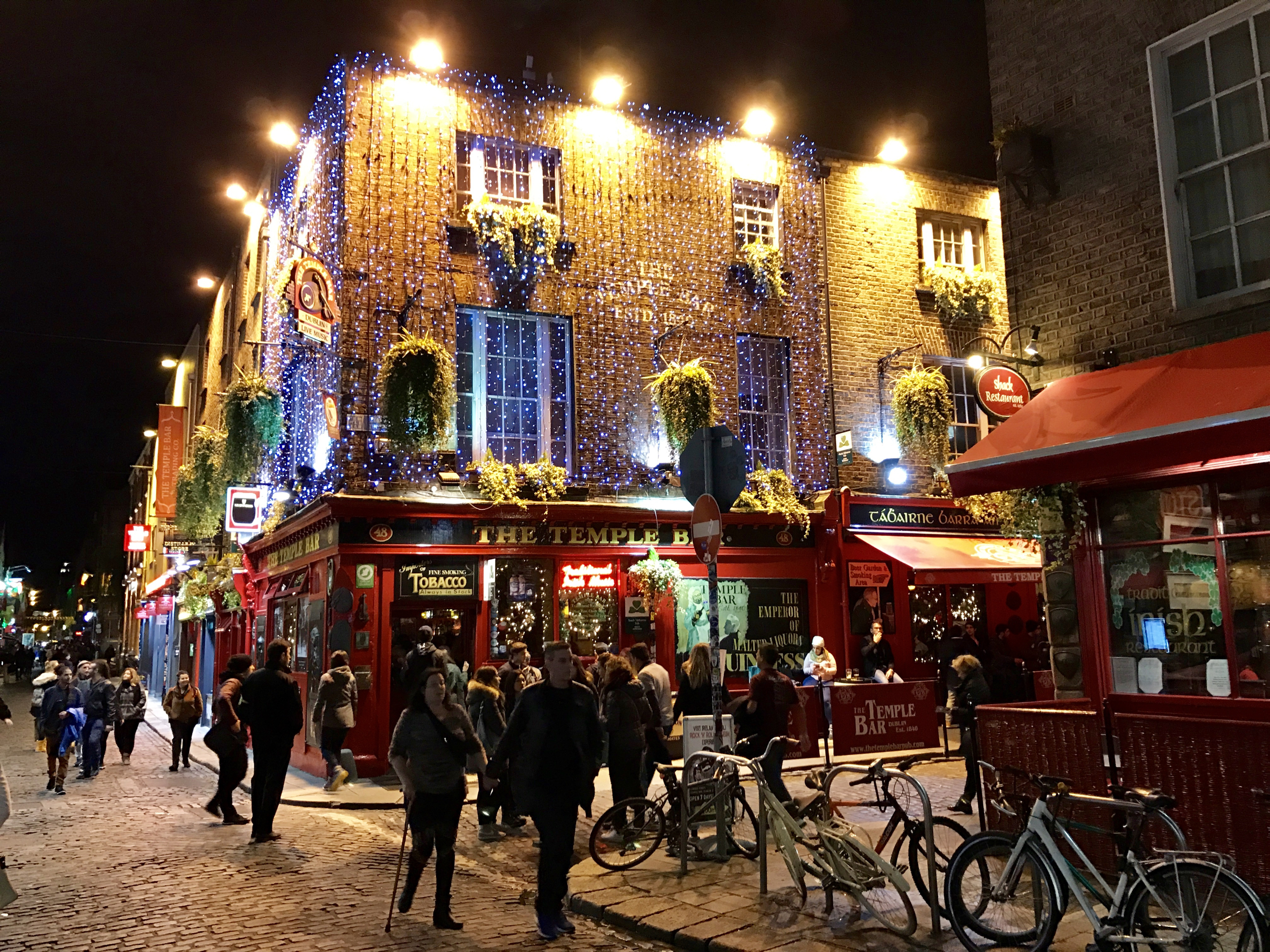 Es war mittlerweile später Nachmittag. Wir verzichteten auf einen Besuch der Guinness Brauerei und kehrten stattdessen im Bakers Pub ein, die noch dazu auch noch eine hervorragende Irish Stew anbieten. Nette Gespräche mit Kund- und Belegschaft ließen die Zeit schnell vergehen. Wir verließen den Pub kurz vor Anbruch der Dunkelheit, liefen durch die Straßen Dublins und fanden schließlich einen weiteren Pub: O’Shea’s Merchant. Relativ spärlich besucht, aber gutes Bier und Essen.