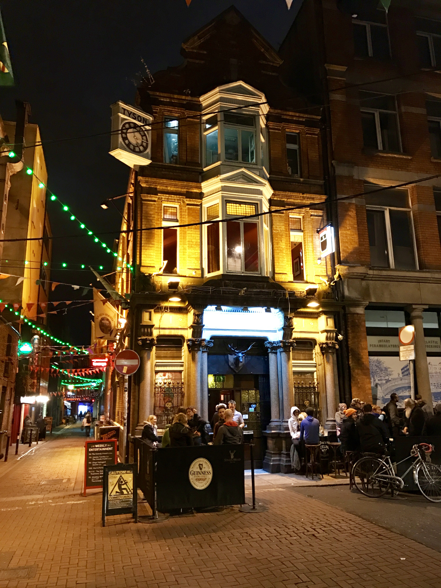 Weiter ging es dann vorbei an etlichen einladenden, aber meist sehr touristischen und überlaufenden Pubs bis wir schließlich am „The Stag’s Head“ ankamen. Dieser gemütliche Pub gehört zu den besten in Dublin und ist unter der Woche nicht ganz so überlaufen wie diejenigen im Temple Bar Bezirk. The Stag’s Head ist traditionell eingerichtet. Man trinkt hier sein Pint unter Geweihen, dunklem Holz und Kronleuchtern. Hier hätte man ohne Probleme den Abend ausklingen lassen, aber mindestens einen weiteren Pub wollten wir noch ansteuern.